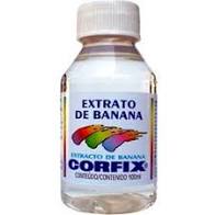 Extrato de Banana 100ml Corfix. Utilizado na diluição e fixação de purpurinas, obtendo-se efeitos metalizados em trabalhos artesanais.