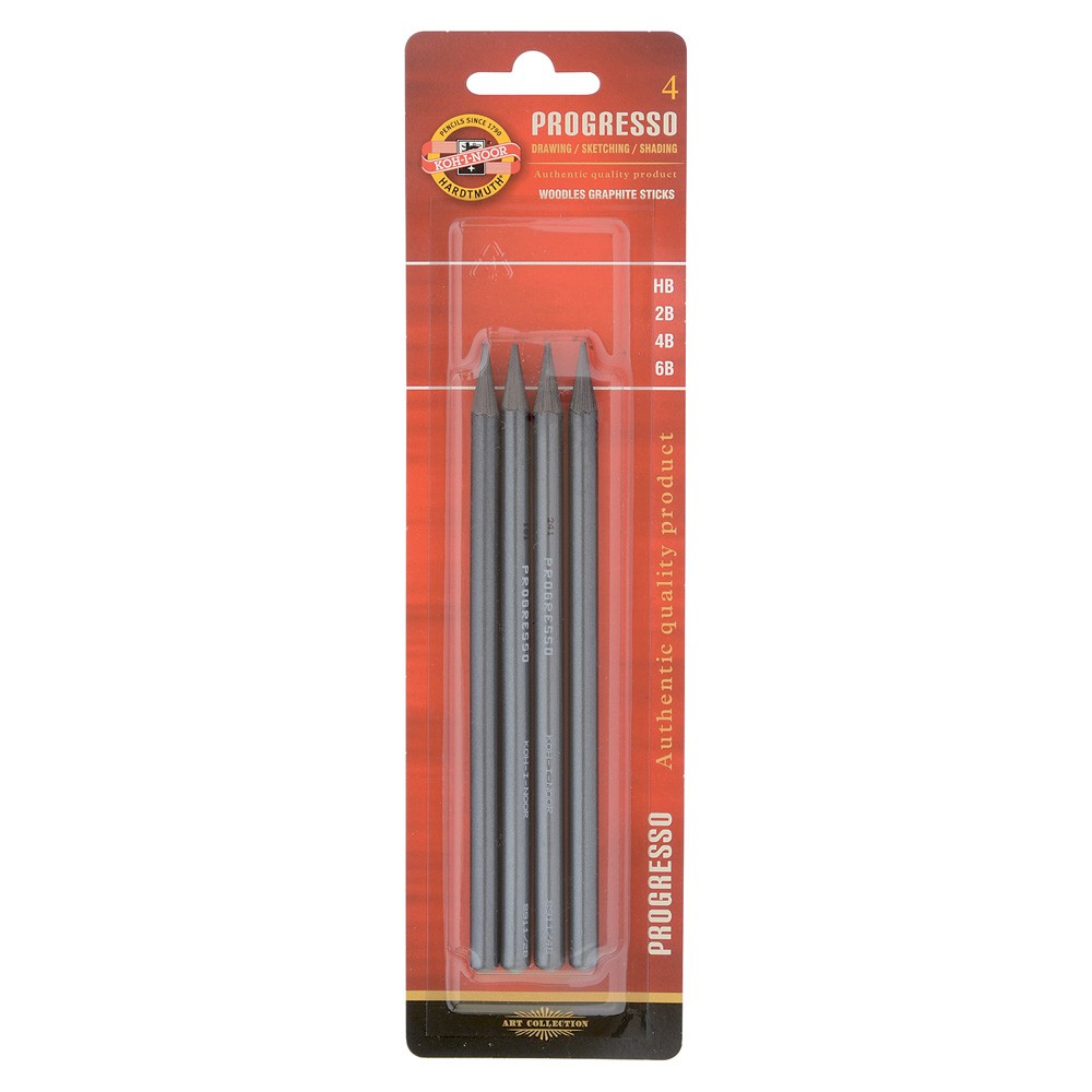 Blister contendo 04 lápis grafite integral nas graduações HB, 2B, 4B E 6B.